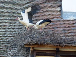 Besonders gut findet man diesen Spruch beim Aufwachsen von Storchenkinder verwirklicht! Fürsorglich kümmern sich beide Elternteile um ihre Jungen, unermüdlich wachen sie und fliegen abwechselnd auf Futtersuche. Sobald die Jungen dann flügge sind -- man kann ihr entsprechendes "Vortraining" in den Nestern stets gut beobachten! -- sieht man die Storchenfamilie dann noch einige Zeit auf den gemeinsamen Ausflügen in den nahegelgenen Futtergebieten. Und dann kommt die Zeit der endgültigen Trennung von den Eltern: die Jungen suchen sich ihren eigenen Weg, zur Zeit fliegen die meisten von ihnen immer noch in den Süden, um dort zu überwintern. Dabei schließen sie sich anderen Jungstörchen zum gemeinsamen Flug an (die Trupps werden natürlich von einigen erfahrenen Störchen geleitet, denn die Jungen müssen immer noch etwas "dazulernen"). Und was machen dann die Altvögel nun ohne ihre Kinder? Sie erholen sich von den Anstrengungen der Aufzucht und fliegen erst später dann zum Überwintern in den Süden. (Mittlerweile bleiben aber auch immer mehr Störche hier, um sich die Strapazen der weiten und gefährlichen Reise zu ersparen; dies scheint der Klimawandel möglich zu machen. Übrigens: Kälte als solche ist für Störche nicht gefährlich, solange sie noch Nahrung finden können; ist jedoch alles zugefroren, werden sie diese Gebiete verlassen müssen, um geeignetere Stellen zum Überleben zu finden.) Im Gegensatz zu den Störchen, die ja fast schon "automatisch" durch ihre Flügel zu einem berechenbaren Zeitpunkt flügge werden, ist es bei den Menschen allerdings schwieriger: Um dem Spruch Gibrans gerecht zu werden, gilt es hier die richtige Balance zwischen Klammern und Loslassen zu finden, damit wohl auch den jeweils individuell geeigneten Bezug zu finden und zu erkennen. Daß dies nicht immer einfach ist, vor allem nicht immer gelingt, zeigen zahlreiche Beispiele, die man sehr leicht in seinem kleineren oder größeren Umfeld finden dürfte. Wer kennt sie denn nicht, jene Fälle, bei denen das rechtzeitige Loslassen, der passende Augenblick des Selbständigwerdens, das Leben in relativer Freiheit und verantwortungsvoller Eigenverantwortlichkeit nicht so besonders oder bisweilen auch überhaupt nicht geglückt sind ...