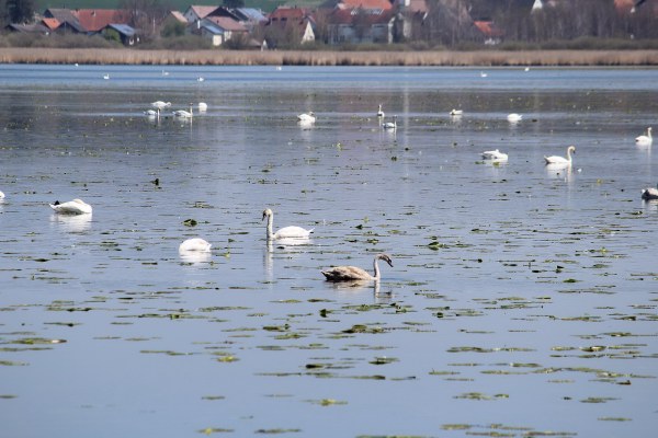 ![]() ![]() Die Schwanenwelt im Federsee, vereinzelte relativ gut geschützte Nester mit Brutgeschehen, die überwiegende Anzahl der Höckerschwäne einigermaßen in Ruhe gelassen in der relativen Weite des Sees ... Auffallend: sehr wenige Jungschwäne (i.e. braune Färbung des Gefieders)