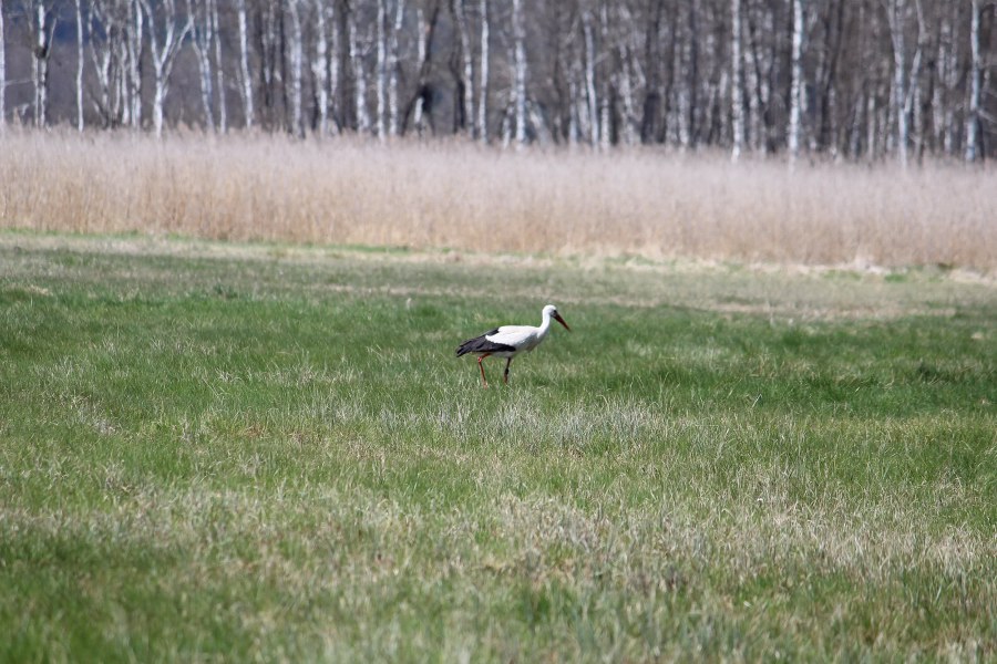 ![]() ![]() Schön verborgen ist das zweite Storchennest in Bad Buchau; das Paar hat die Aufgabenteilung voll übernommen: ein Partner auf der dem Nest nahegelegenen Wiese auf Futtersuche, ein Storch sitzt auf den Eiern und brütet. Mehrfach stand er / sie auf, um die Eier zu wenden.